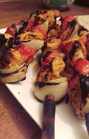 However, for now - this is a lovely recipe that you can prepare in the morning before work by marinating the chicken and when you get home pop it on a skewer and grill as hot as you can, with onions and tomatoes. Its a dish cooked all over the world but I like the Indian spiced ones the best.